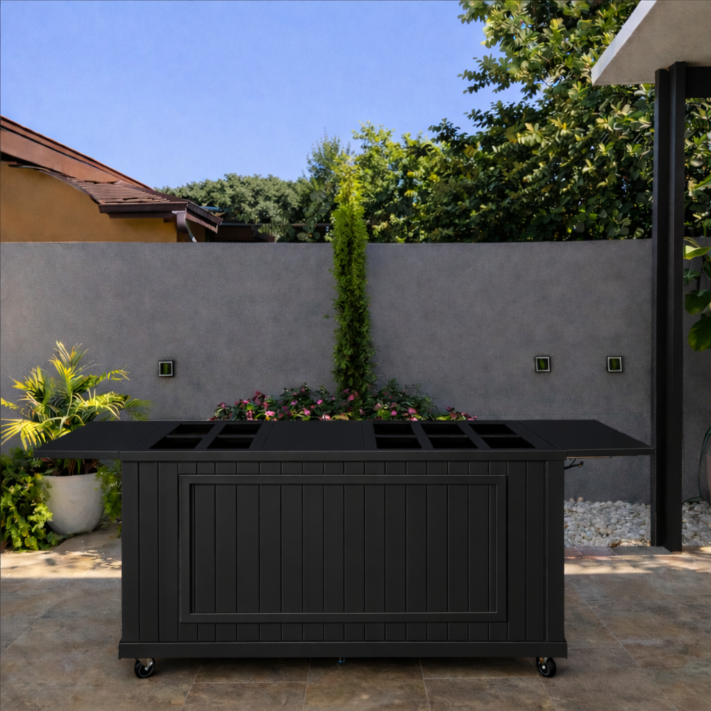 The Model 0107 Slatted Front Charcuterie Cart adds subtle depth and texture through evenly spaced vertical slats while maintaining a clean, modern profile. This design offers visual interest without overpowering the event setup, making it ideal for both formal and casual settings. Fully collapsible and built for portability, the slatted front delivers a polished look that complements a wide range of décor styles while preserving the same functional layout and durability as the flat-front model.
