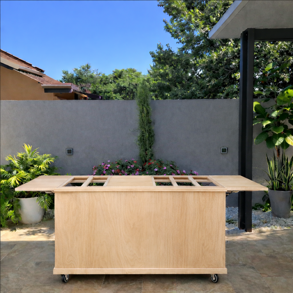 Our Rustic Catering & Food Cart blends natural materials with handcrafted detail to create a warm, inviting centerpiece for any event. Featuring a collapsible, portable design for easy transport and quick setup, it showcases natural wood tones and stained finishes that highlight the grain and craftsmanship. Fully customizable with front styles, logo options, umbrellas, and stain choices, each cart is built to order—offering a refined rustic look that’s both functional and uniquely yours.